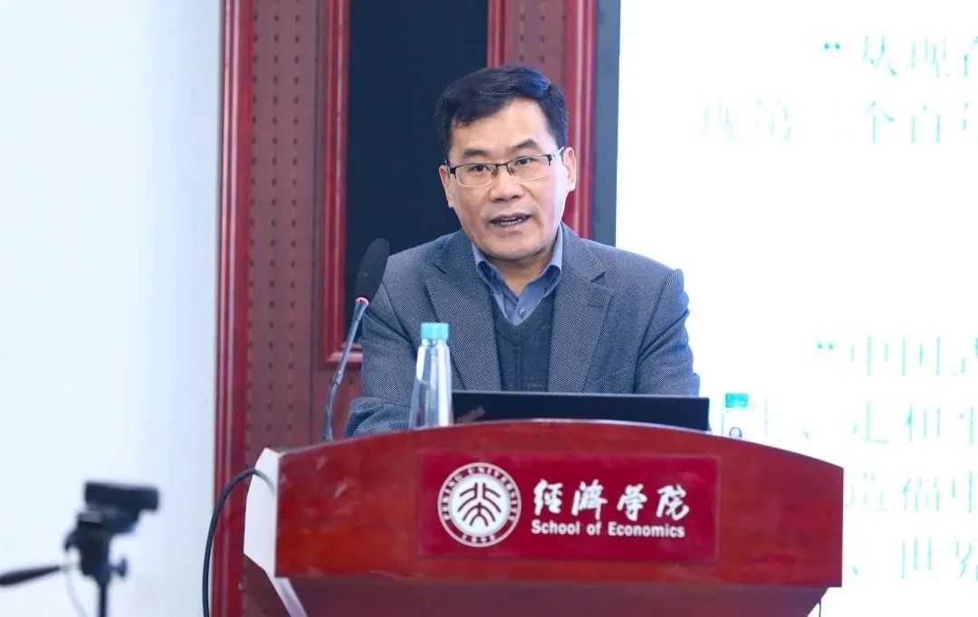 首先,中国政法大学商学院副院长熊金武教授以“科学哲学视野下的斯密革命”为题作演讲。他指出,学界一般将斯密的《国富论》作为现代经济科学的起点。这是因为从科学哲学的观点来看,在斯密之前,经济科学并未从传统的哲学、历史学、政治学等混合的学科体系中分离出来,也没有形成独立的科学共同体;而斯密则建立了以劳动价值论、三要素理论为代表的思想硬核,以及以“看不见的手”、绝对优势理论为代表的保护带,使经济学进入了常规科学的时代。