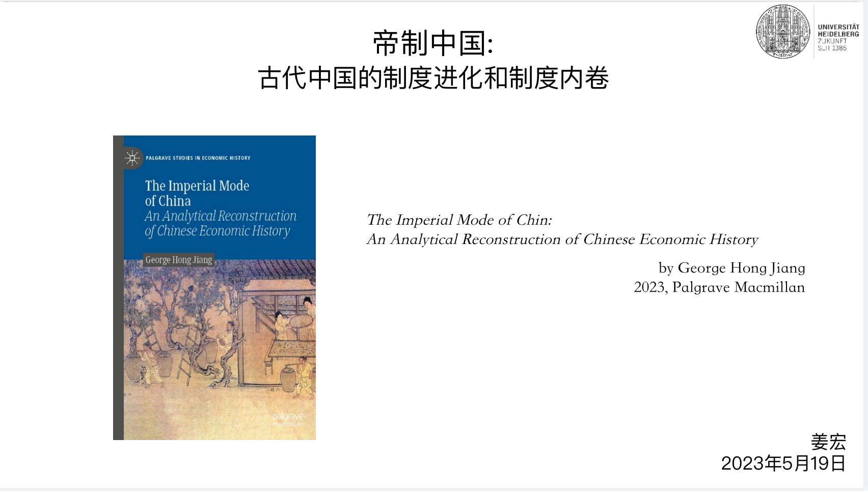 讲座伊始,姜宏博士指出本次讲座主要围绕两个问题展开。一个是古代中国的社会性质是什么?由此得到衍生问题:如何解释王朝周期?另一个则是经典的大分流问题:为何在古代发达的中国在近代落后?