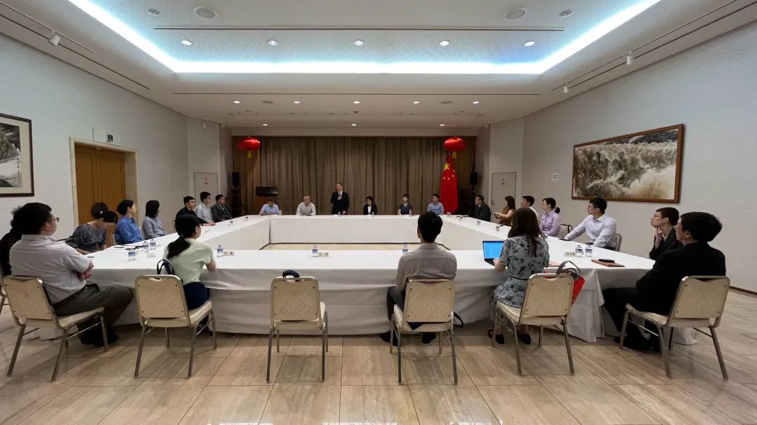 7月13日,北大经院教师代表团访问中国驻大阪总领馆,拜访中国驻大阪总领事薛剑,副总领事魏有美、教育处主任聂瑞麟、经商处领事徐永强、教育处领事周炼、办公室副领事范梦婕等参加了会见。薛剑总领事介绍了当前中日关系的形势,指出今年是《中日和平友好条约》缔结45周年,中日关系再次迎来重要节点。为维护和发展中日和平友好合作的正确方向,推动中日民间交流极为重要。北大经院教师代表团成员就中日经济关系、贸易投资、日本民间访疆团等问题向总领事提问,双方亲切交流并共进工作午餐。