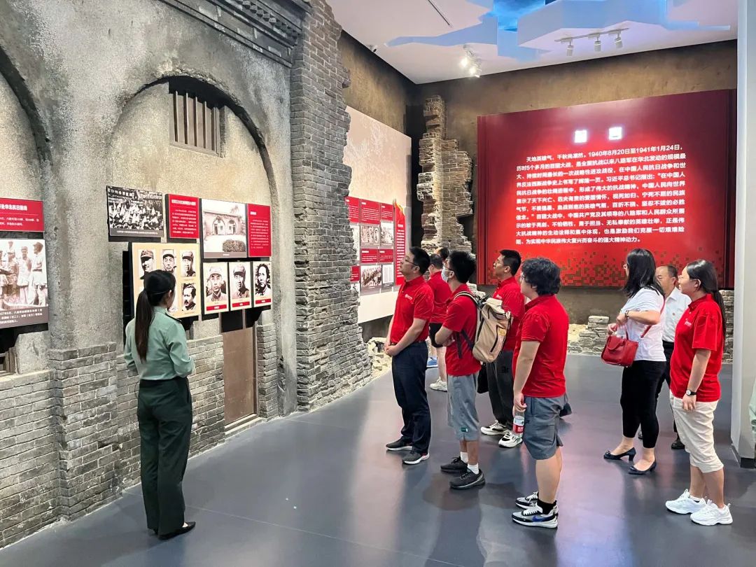 7月10日,实践团首先前往位于狮脑山的百团大战纪念馆参观学习。百团大战是抗日战争相持阶段八路军在华北地区发动的一次规模最大、持续时间最长的战役,其胜利增强了全国军民抗战到底的信心。狮脑山百团大战纪念馆是我国唯一一座以百团大战为主题的纪念馆,馆内展品丰富,展览信息详细,并采用了先进技术再现峥嵘岁月中激烈的战斗情境,经院师生在此详细了解了长达五个多月的百团大战的全过程,深刻体会到敌后战场的艰苦卓绝和军民一体的强大力量。