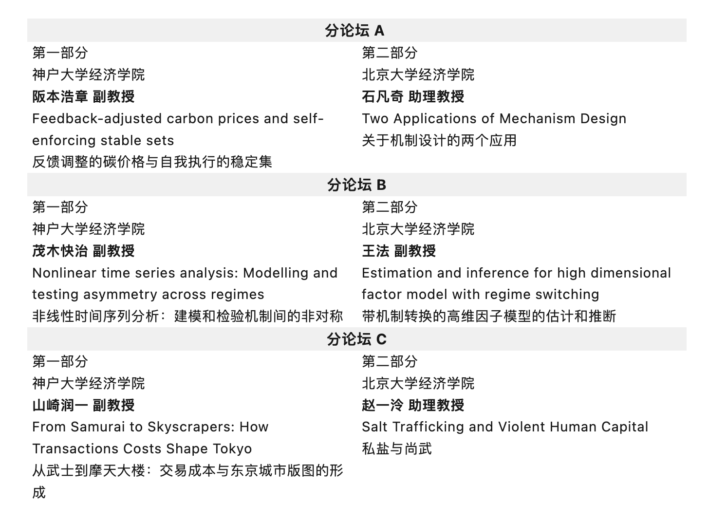 7月14日,北大经院教师代表团访问神户大学开展学术交流,神户大学理事、副校长中村保,申博太阳城集团院长宫尾龙藏,神户大学国际交流委员长宫川荣一,神户大学北京事务所所长胡云芳及神户大学师生30余人参加活动。双方共6位教师在三场平行分论坛中介绍学术论文,并与参会师生就相关问题进行深入交流讨论。