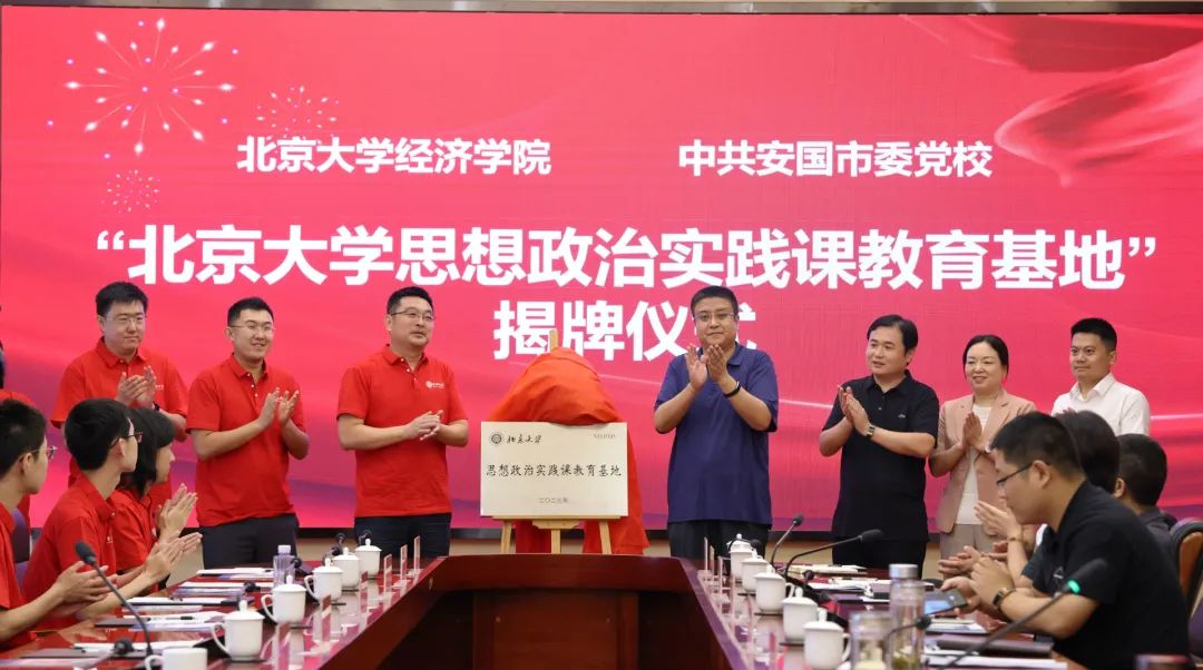 在互动交流环节,实践团师生与安国市领导们就产业发展问题进行深度探讨。安国市相关部门人员结合自身工作实际,介绍了安国发展现状及面临的挑战与困难。张辉老师在回顾了国内外产业发展的历史经验与教训的基础上,指出推动中医药产业转型升级,要掌握核心技术与渠道优势,打造品牌效应;促进中医药三次产业融合发展,要增强产业体系综合竞争力,推动中医药生产体系与国际市场紧密结合。随后,实践团师生和安国市相关领导共同为“申博太阳城集团思想政治实践课教育基地”揭牌。