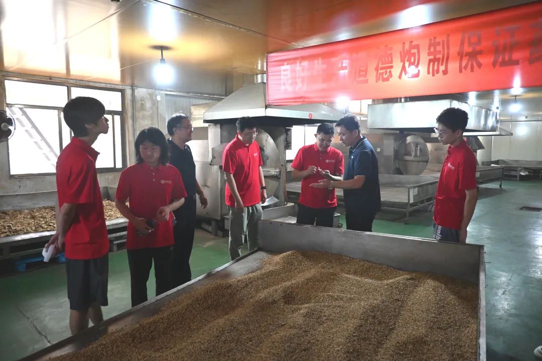 8日下午,实践团师生前往参观安国市当地知名药企,深入了解中药企业生产流程,发展历程、产业结构,以及安国市地方中医药产业的发展情况。在百消丹药业有限公司,实践团师生重点参观了“游学养”产业项目,了解到从康养文旅方向开辟中医药产业发展的新路径、新思维。百消丹以“游有优品,学有优教,养有优境”为发展目标,将中医药产业和第三产业相结合,开辟了新的增长点,打开了新的发展赛道。在金木集团,实践团师生参观了金木集团在生产源头创新工艺的现代化生产技术。金木集团通过培育克隆工程,优化石斛的种植过程,以更简易的条件、更低的培育成本,培育出营养成分堪比完整石斛三分之一的石斛幼芽。最后,实践团师生前往聚药堂药业有限公司,参观了中药从原材料到药材的完整制作过程,对中医药产业有了更加深入的了解,更深刻地认识到地方中药产业的活力与生机。