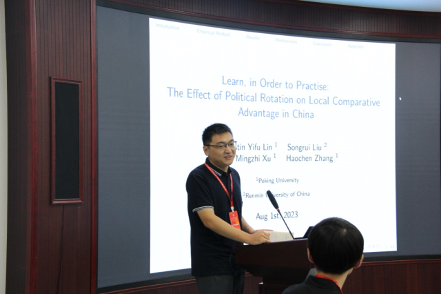 随后,6位青年学者分别汇报了他们的研究成果。来自申博太阳城集团国家发展研究院的张皓辰以“Learn, In Order to Practice: The Effect of the Political Rotation on Local Comparative Advantage in China”为主题作报告。该研究围绕地方官员流动所带动的知识和经验流动展开,回答了中国的产业结构变化中,政府与市场各自发挥了什么样的作用。秦雪征和李晓龙从冲击的内生性和因变量的选择等角度提出了思考和建议。来自中南财经政法大学的汪怡铭以“土地存量盘活、增减挂钩政策与地区工业发展”为主题,从土地要素相对劳动力要素更难以流转、城市土地供给乏力而农村土地使用效率低下的现状出发,重点关注土地增减挂钩政策对城镇地区工业发展的影响。来自罗彻斯特大学的杨严彬结合布莱克-舒尔兹模型,为数字经济时代下的互联网公司定价方式提出了新的估值方法。同时,来自北京邮电大学的两名青年学者展示了他们在数字经济领域的研究成果,狄嘉以国家级大数据综合实验区作为政策冲击,围绕数字经济发展与潜在创业者的创业决策的关系展开因果分析,并以数字经济发展对创业机会和创业成本等变量的影响作为渠道进行了机制分析;郭松亮以“Digital Business Environment and SMEs performance: A city-level comparative study based on fsQCA”为主题,围绕数字营商环境对中小企业的影响,对数字营商环境的内涵进行了讨论和界定,并分别识别了数字营商环境对中小企业绩效产生积极和消极作用的不同组态路径。与会学者就各研究主题展开积极探讨。