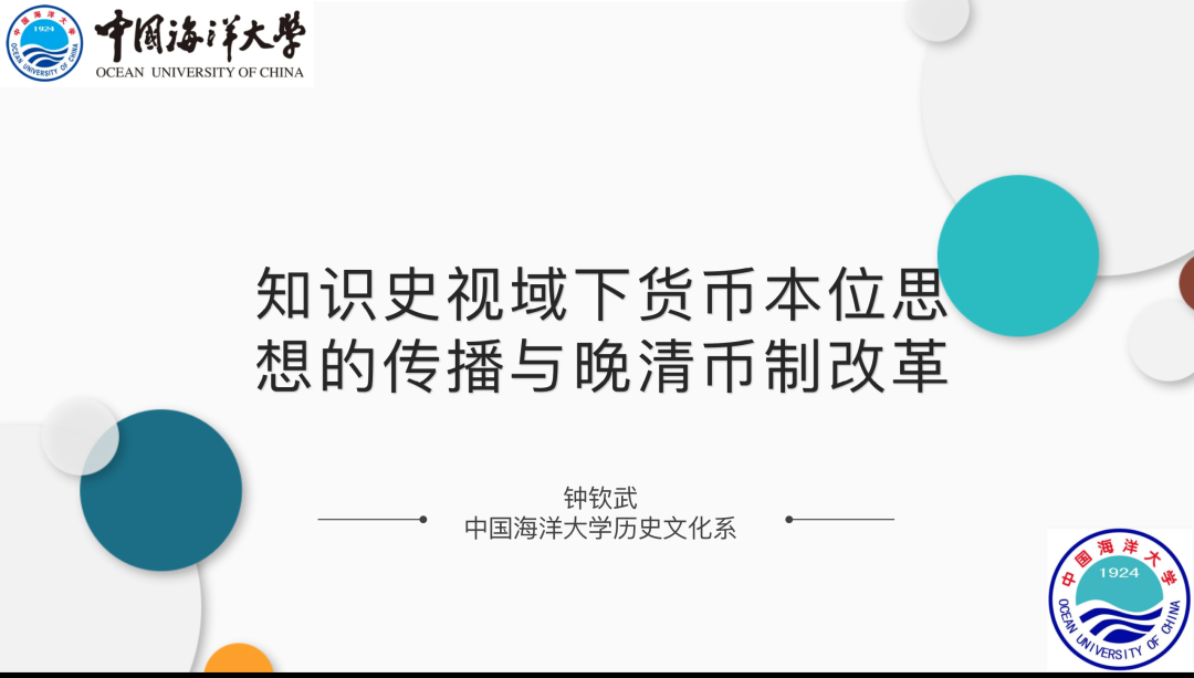中国海洋大学讲师钟钦武以《知识史视域下货币本位思想的传播与晚清币制改革》为题进行报告,对近代中国货币本位思想的引入、传播与实践进行了梳理分析。近代中国,域外货币思想的传播使国人逐渐对西方货币知识有了初步认识和了解。甲午战争的巨额赔款放大了原本不太明显的金银比价问题,刺激了国人对货币本位问题的关注,使得国人对货币本位思想由被动了解转向主动探索。1910年(宣统2年)4月16日,清政府颁布了《币制则例》,这标志着银本位制在中国的正式确立。他谈到,晚清的货币本位思想成为其政治遗产之一,引领了此后中国货币本位制度的走向,纵观整个近代中国,金本位自始至终未能在中国大地生根发芽。