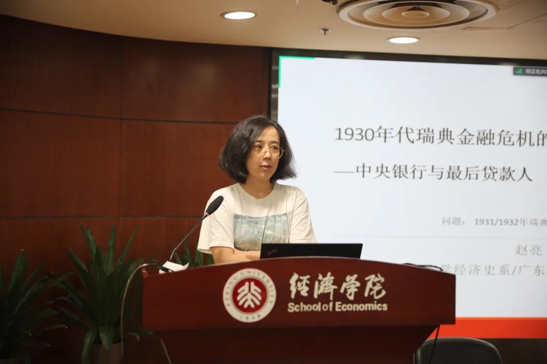 广东海洋大学讲师赵亮以《瑞典20世纪30年代银行危机再考察——中央银行与最后贷款人》为题进行报告。她对二十世纪三十年代金融危机中瑞典央行货币政策的具体内容和目标进行梳理分析。赵亮指出,二十世纪三十年代金融危机期间,瑞典央行只有在银行濒临危机真正需要释放流动性的时候才释放流动性,且其释放的限度仅限于避免银行倒闭。央行的实际目标大多时候并不是其宣传的稳定物价水平,而是货币稳定。最后她总结道,瑞典经济复苏的原因与其解释为央行扩张性货币政策对需求的刺激,不如说是危机初期通过货币贬值获得的相对欧洲其他国家的出口优势,瑞典的央行并没有真正享受到货币政策的自主权。