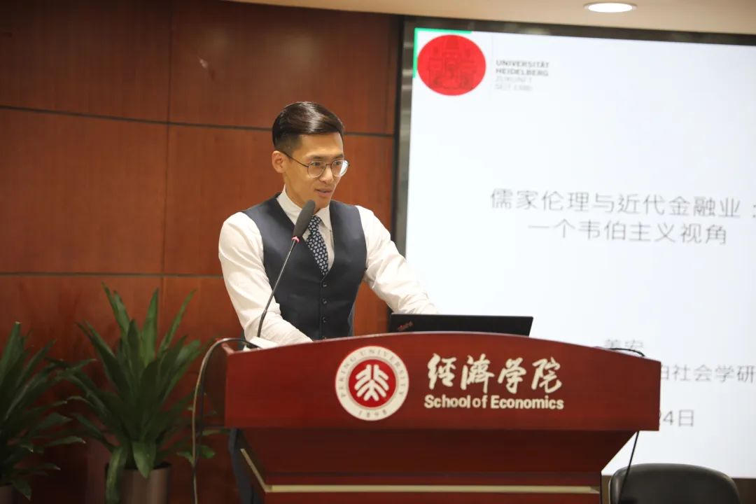 海德堡大学马克思韦伯社会学研究所研究员姜宏以《儒家理论与近代金融业:一个韦伯主义视角》为题进行报告。他介绍了韦伯在新教伦理与资本主义精神中的思想渊源,分析并探讨了儒家与道教在韦伯整体宗教社会学中的地位、儒家伦理二重性对金融业的影响。姜宏指出,根据韦伯主义的分析,一方面,儒家伦理对现代经济发展有着一定的消极作用,即所谓的伦理束缚,儒家鼓励个人服从于集体的行动方式,不鼓励创新式的商业冒险,家长制社会结构形成的地域风险机制消极作用于金融业发展;另一方面,儒教与世界其他宗教相比,只有儒教是不讲求来世救赎的,这在一定程度上又会促进金融业的发展。