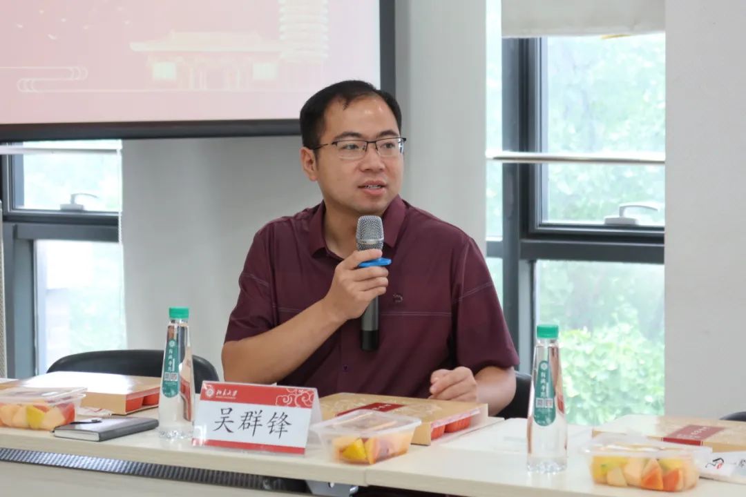 随后,国际经济与贸易系的老师们送出了对新生们的寄语,并提出了殷切的建议与希望。陶涛老师指出,新一级研究生一只脚已经踏入了社会生活,但是于实习相比,更应当关注对于思维方式的培养,真正在北大学有所得,希望能够在两年之后见证大家的蜕变。李权老师谈到,在同学们的身上已感受到对于未来较为明确的规划,国际商务硕士项目将为大家提供充分的发展空间,希望同学们积极参与系里举办的产学研等各项活动,并从中得到更大收获。陈仪老师提出了三点建议,一是尽快进入研究生角色,并提前做好学习规划,为未来的发展做好准备性工作;二是在学业与求职之间进行平衡,他引用一篇经典经济学文献指出,在技术进步越快时,学习与经验相比的重要性越大,因此希望大家在快速变化的世界中培养出主动学习的习惯;三是希望大家在北大的两年真正学有所得。戚自科老师建议同学们不要太过焦虑,大部分问题都会在未来找到答案,应尽力平衡好学习、实习与生活,不过于强迫自己,试图培养出 “松弛感”。莫家伟老师指出,老师们能够给大家提供的是对于宏观的判断,学长学姐则能够提供更加详细的信息,因此积极与不同师友进行交流很有必要,有助于扩充同学们对于世界的认知。吴群锋老师谈到,对于不断变动的未来,困难总是会有的,而且随着我们的不断发展,面临的困难也会愈发艰巨,但是我们应该要有信心,相信大家能够通过个人努力和学院培养,在未来的学习生活中脱颖而出。