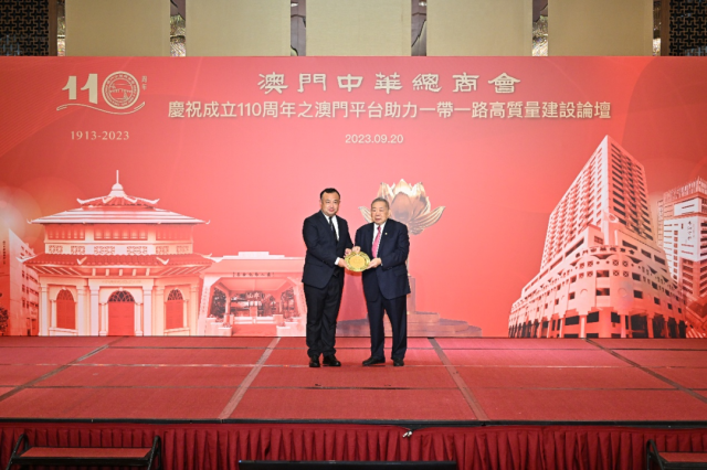 澳门中华总商会成立于1913年,是澳门最大的工商社团,坚持爱国爱澳,拥有卓著的影响力。今年正值澳门中华总商会成立110周年,“澳门平台助力‘一带一路’高质量建设论坛”是系列纪念活动的重要内容。张亚光副院长是论坛特邀的两位主旨发言者之一,澳门中华总商会会长崔世昌先生为其颁发了荣誉证书。全国政协副主席何厚铧、全国政协副主席咸辉、澳门特区行政长官贺一诚、澳门中联办主任郑新聪、外交部驻澳门特派员公署特派员刘显法、解放军驻澳部队副司令员戴劲松、澳门特区立法会主席高开贤、中华全国工商业联合会副主席邱小平等嘉宾出席了当晚的庆祝活动。