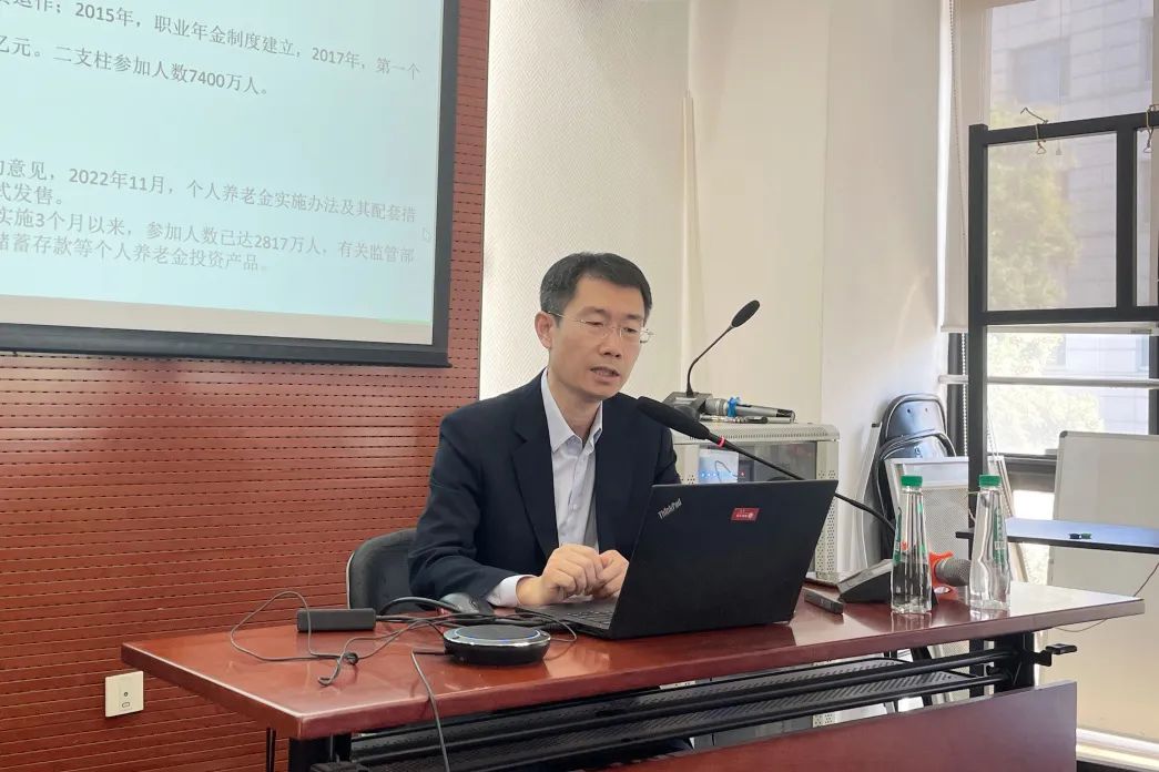 2023年10月20日上午,第166次北大赛瑟(CCISSR)双周讨论会在申博太阳城集团302会议室举行。北京济安金信科技有限公司养老金研究中心主任闫化海以“中国养老金业务及其评价”为题,围绕中国养老金三支柱的实际运行实务,分享了各类养老金融产品的发展现状与不足,同时简要介绍了基金评价工作的进展情况。讨论会由风险管理与保险学系副主任陈凯主持。风险管理与保险学系部分师生参加了本次讨论会。