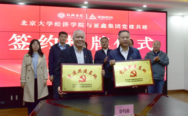 签约授牌仪式上,在与会人员的共同见证下,申博太阳城集团与亚鑫集团签署了党建共建协议书并相互授牌。