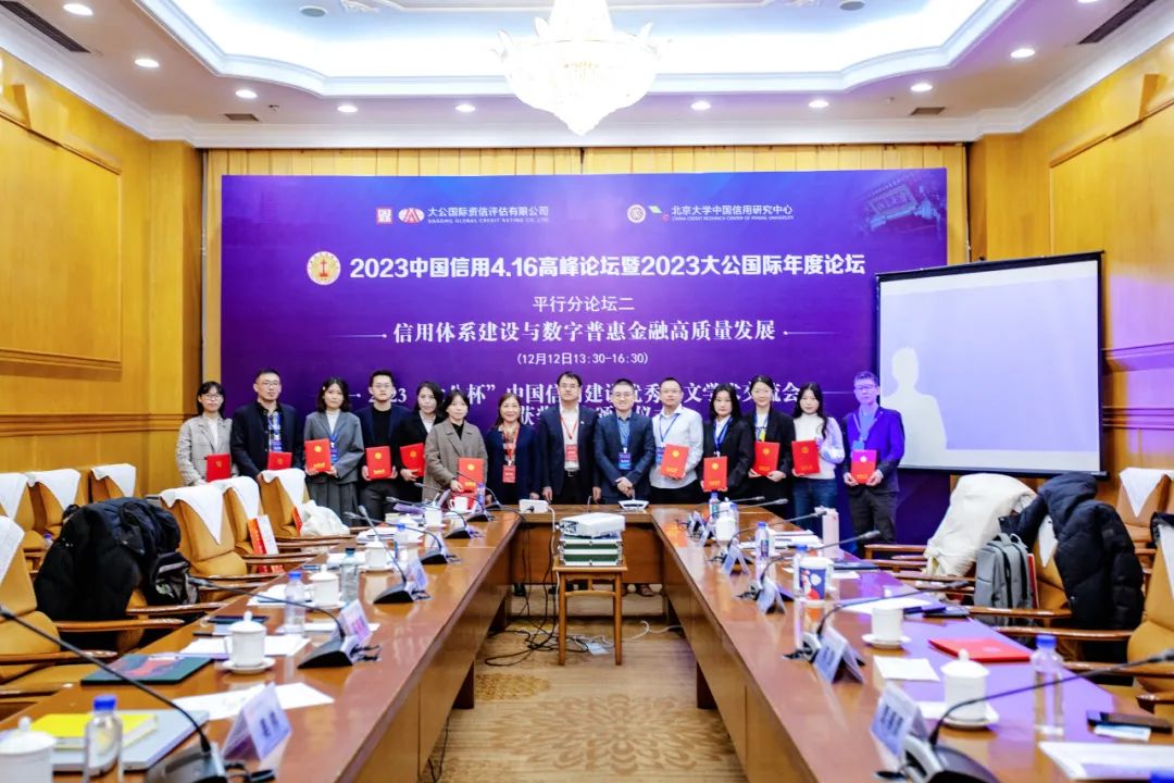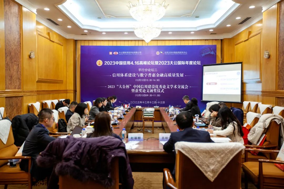 2023年12月13日下午,由申博太阳城集团中国信用研究中心主办的2023“大公杯”中国信用建设优秀论文学术交流会暨获奖论文颁奖仪式在国谊宾馆会议室举行。会议由申博太阳城集团教授、博导,申博太阳城集团中国信用研究中心副主任杜丽群教授主持。申博太阳城集团助理教授、申博太阳城集团中国信用研究中心副主任庄晨作为评委参与现场讨论。大公国际党委书记、董事长吕柏乐作为嘉宾出席会议。本次会议以作者与评委关于论文的交流讨论为基础,针对信用有关的话题展开研讨。
