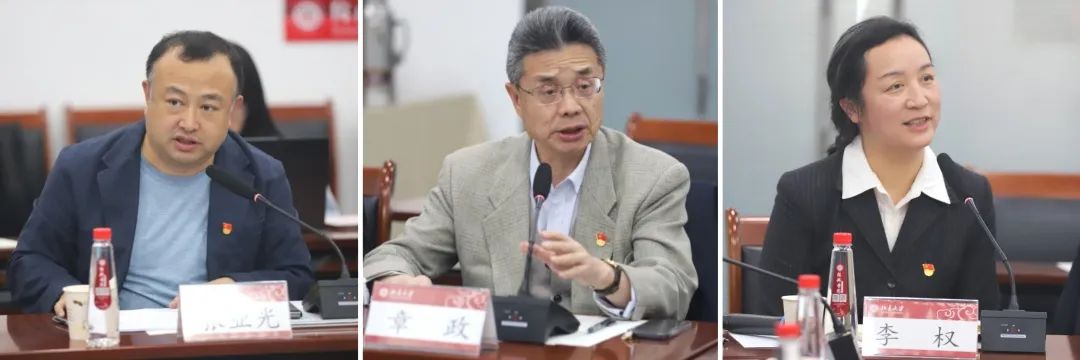 随后, 教职工党支部书记述职。蒋云赟、石菊、常颖、刘岚、陈凯依次围绕支部基本情况、工作开展、党建特色、现存问题、整改思路等方面进行了总结和汇报。在评议环节,张亚光总结了各个教职工支部的特色并肯定了支部书记们的辛勤付出。章政指出,人口研究所的支部活动做到了与日常管理、科研创新的紧密结合。李权谈到,支部书记对支部建设起着十分重要的带动作用,要以身作则,充分发挥自身的影响力和引导力。