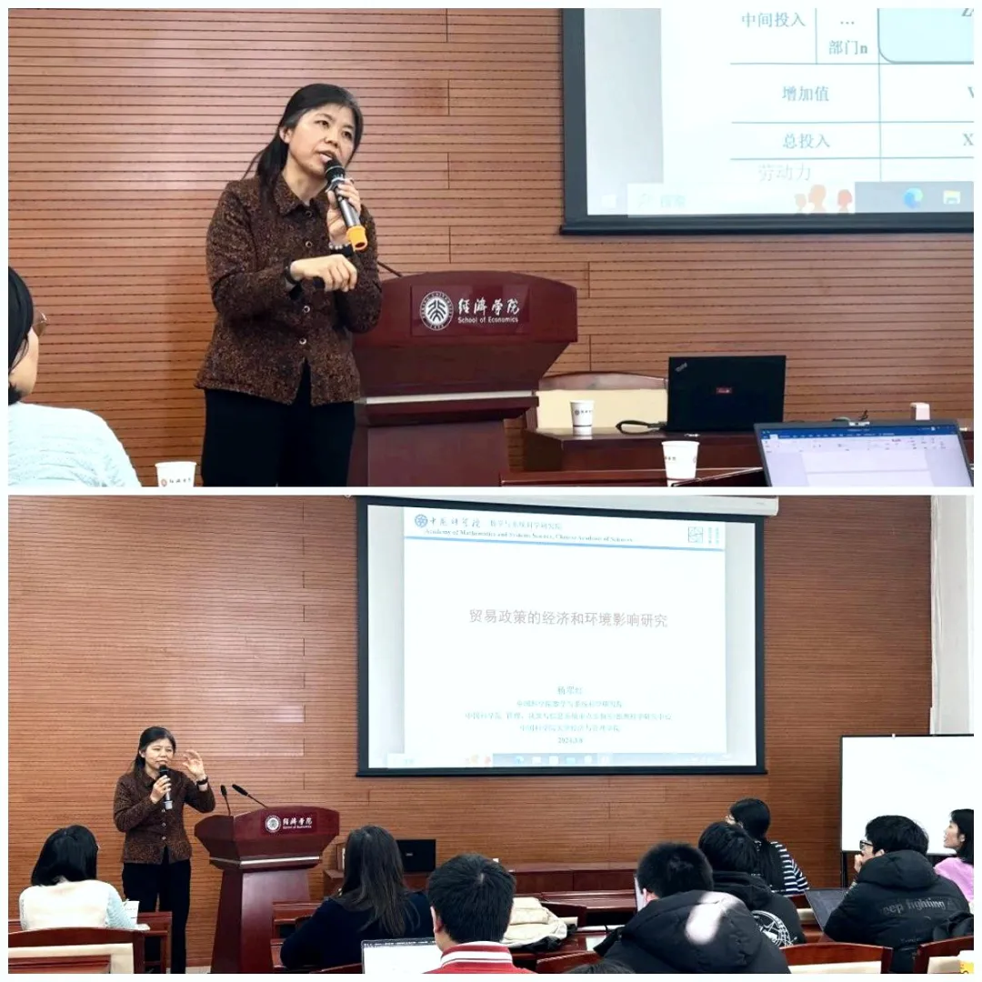 杨翠红分享了课题组贸易政策对经济、环境影响的三个研究。第一个研究分析中美贸易摩擦的经济影响。美国对自中国进口产品加征关税,不仅会影响中国的出口贸易,也会沿着全球产业链波及美国及众多生产链条上的经济体。文章首先利用不完全替代进口需求模型估计了关税对美国进口中国七大类商品需求的弹性,接着运用单国非竞争性投入产出模型计算了对增加值的影响,进一步用反映加工贸易特点的非竞争型投入占用产出模型细致区分加工贸易拉动、一般贸易的影响,最后基于世界投入产出模型(WIOT)及假设提取法核算中美贸易切断对经济、出口就业的影响。结论表明,大规模的中美贸易摩擦对中美两国经济增长带来严重影响,也会对东亚经济体和欧盟产生较大影响。