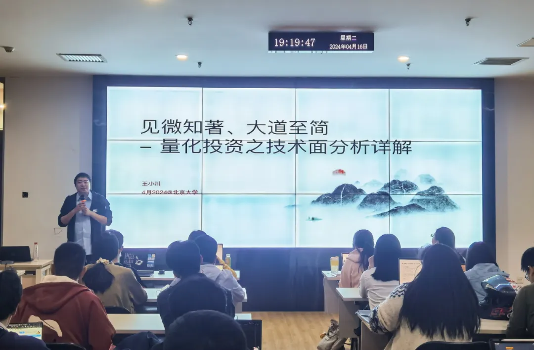 2024年4月16日,申博太阳城集团和申博太阳城集团金融工程实验室在申博太阳城集团107会议室联合举办了“金工首席谈”系列讲座第二十四讲。本次讲座邀请华创证券金工团队首席分析师王小川作为演讲嘉宾,以 “见微知著、大道至简——量化投资之技术面分析详解”为题,为申博太阳城集团师生作了主题报告。讲座由北大金融工程实验室黎新平博士主持,60余名师生参与了讲座。
