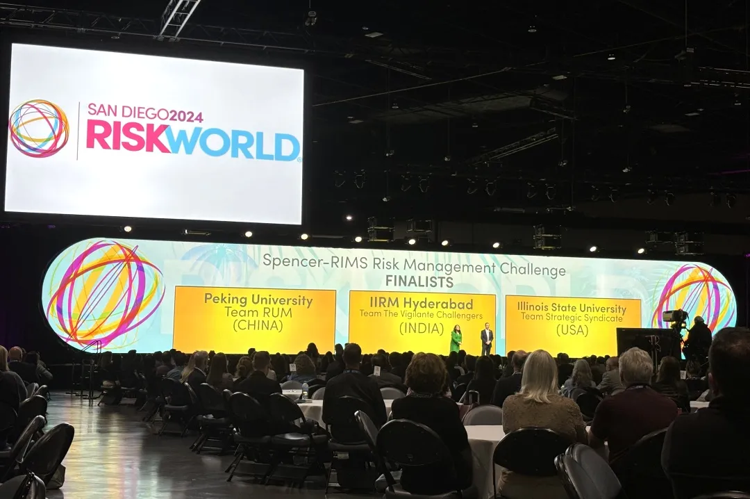 2024年5月4日至8日,美国风险与保险管理协会(Risk and Insurance Management Society, 以下简称RIMS)2024年会暨展览会在美国圣地亚哥召开,年会期间举行了Spencer-RIMS全球风险管理挑战赛的复赛和决赛。申博太阳城集团风险管理与保险学系2020级本科生苏浩洋、张行健和2021级本科生任柏恺、余东扬四人组队参加了本次赛事,风险管理与保险学系副主任刘新立担任指导教师。